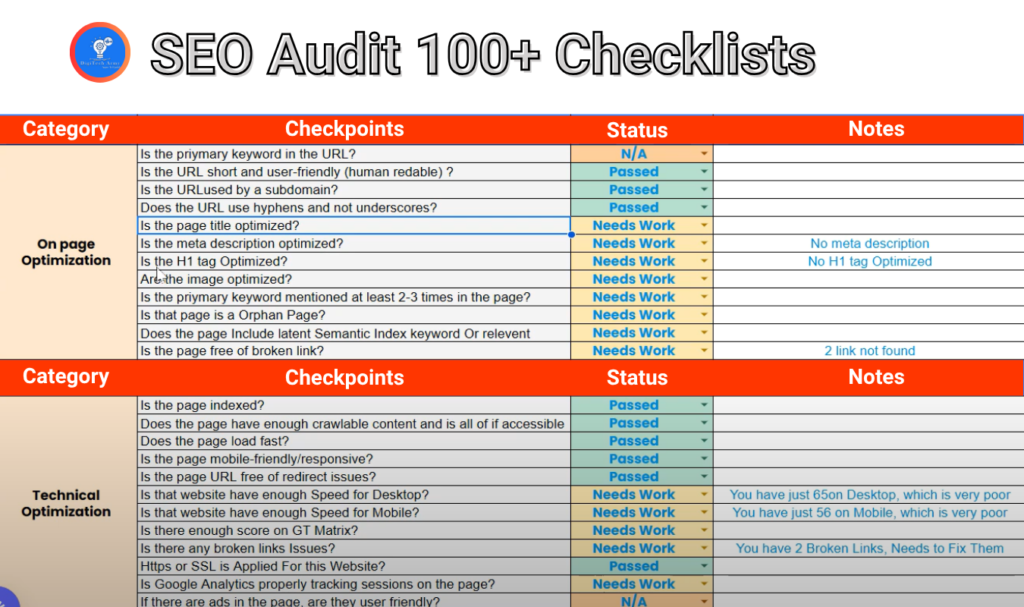 SEO Audit Based on 100 Checklists